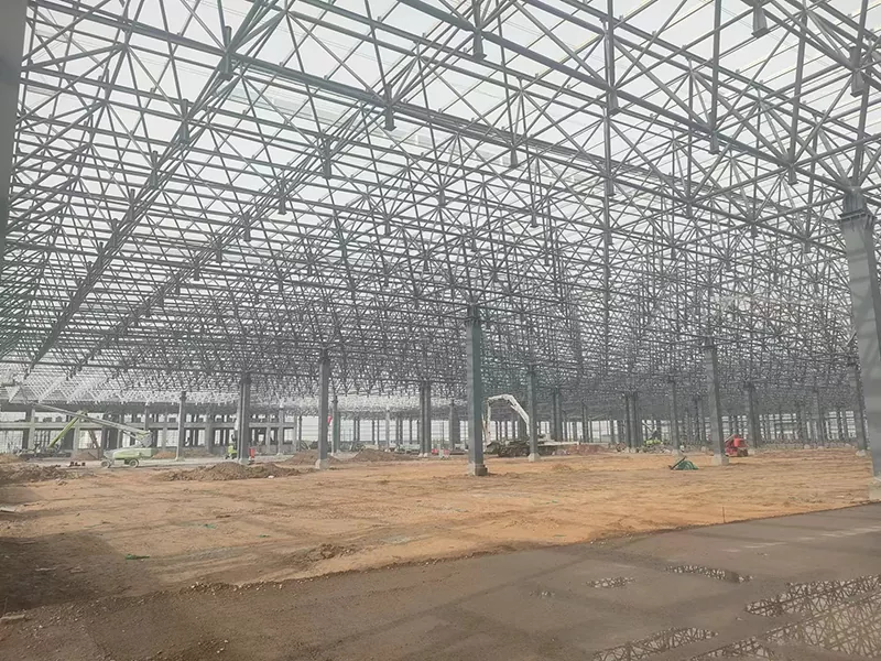 Os quadros de aço formam a espinha dorsal estrutural do armazém, fornecendo uma base sólida e estável. Esses quadros são projetados para suportar o telhado e as paredes, garantindo a integridade estrutural de todo o edifício. Os quadros de aço também oferecem excelente resistência às condições climáticas e à corrosão, garantindo a durabilidade a longo prazo do armazém.